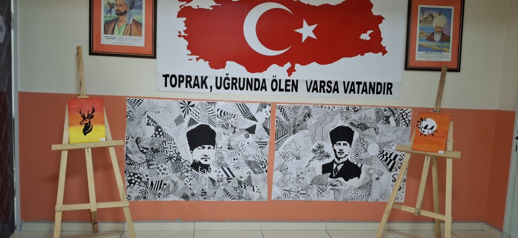 Ahmet Mücteba Albayrak Ortaokulu öğrencileri, bu yılki Resim Sergisi'ni büyük bir heyecan ve coşkuyla gerçekleştirdi. Sergi, okul binasında ziyaretçilere sunuldu. Öğrencilerin yaratıcılıklarını sergileyen eserler, renkli ve özgün tasarımlarıyla dikkat çekti. Resim sergisinin düzenlenmesinde emeği geçen öğrencilerimize ve görsel sanatlar öğretmenimize emeklerinden dolayı teşekkür eder başarılarının devamını dileriz.