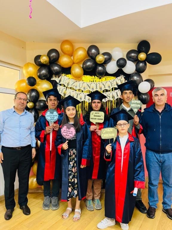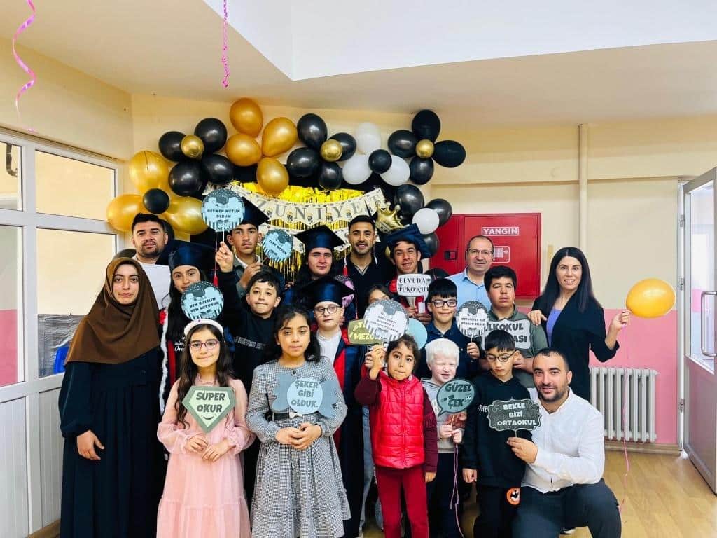 Ahmet Mücteba Albayrak İlk ve Ortaokulu Özel Eğitim Sınıfı öğrencilerimiz için 2024-2025 Eğitim-Öğretim Yılı’nın sonunda yıl sonu mezuniyet programı düzenlendi. Öğrencilerimizin yıl boyunca gösterdiği azim, çaba ve başarılar coşkulu bir törenle kutlandı. Duygu dolu anların yaşandığı programda, öğrencilerimizin sergilediği performanslar büyük beğeni topladı. Törenimize katılarak bizleri onurlandıran İlçe Millî Eğitim Şube Müdürlerimiz Sayın Halil AKHAN ve Sayın İzzet ORUK’a, Mahalle Muhtarımıza ve desteklerini her daim hissettiren değerli velilerimize teşekkür ederiz.